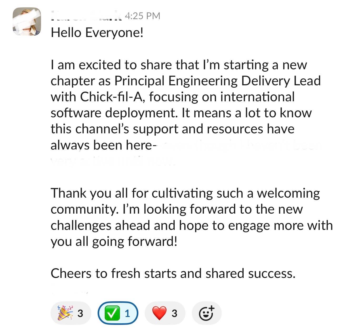 ​This is what I helped my client Karen with. She no longer wanted to grow in her company due to the toxic behaviors of the leadership team and feeling stalled. Instead, we doubled down on her external networking strategy, interview practice, role-plays and negotiation. This led her to secure her dream position at a new company where we're now building out her first 90 day success plan.