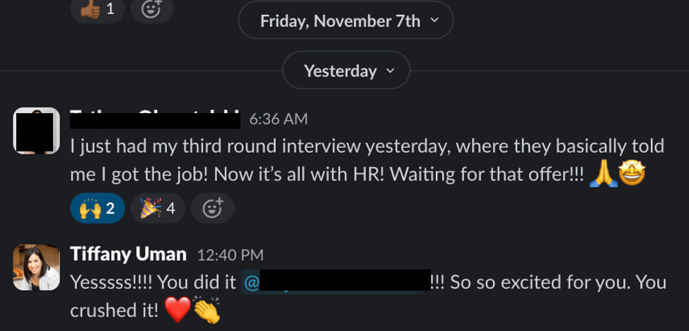 Instead, we shifted her focus on internal visibility and relationship management, interview practice, and nailed her differentiators in her storytelling. And now, she's the final candidate about to receive her offer.