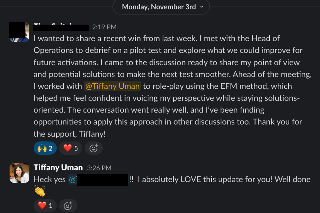 → Share results as strategic updates, not self-promotion: Visibility doesn’t mean bragging. It means giving leaders the information they need to make the most informed decisions.