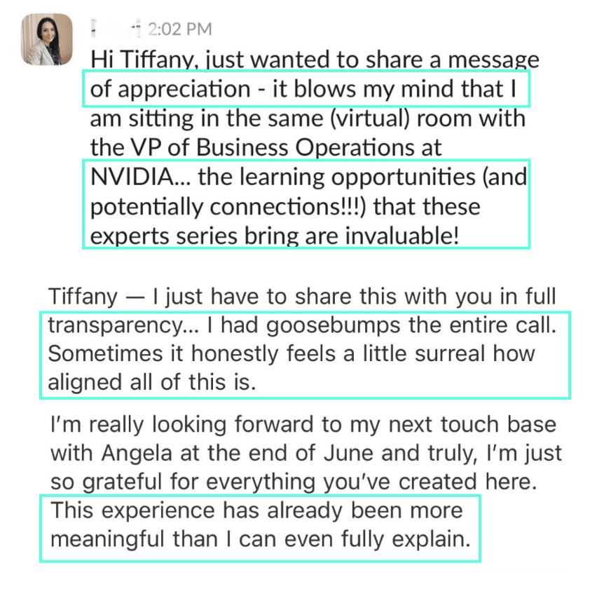 Angela Ying, VP of Business Operations at NVIDIA, has exclusively joined my program as well to support our clients every single month. Having been with NVIDIA for over 25 years, growing it to a $4 trillion dollar company, and in the inner circle of Jensen Huang, she brings an equally powerful lens of operational excellence, scale, and precision paired with deep empathy for the human side of leadership and growth.